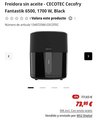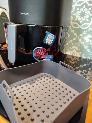 Freidora de aire Cecotec, prácticamente nueva. - Capacidad para freír al aire. - Diseño elegante y compacto. - Asa de fácil agarre. - 2 cubetas de 4.5 L cada una, se pueden usar a la vez, por separado o con distintas programación. - Poquísimo uso.