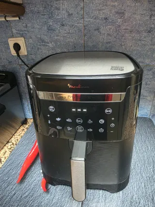 Freidora de aire Moulinex Easy Fry & Grill en color negro y acabado plateado. Modelo XXL. - Función grill integrada. - Panel de control digital con programas preestablecidos. - Asa extraíble para facilitar el uso. -separador de alimentos