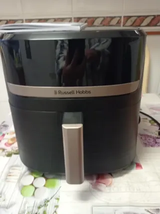 Freidora de aire Russell Hobbs en color negro con detalles en dorado. Es de 8'3 l. - Diseño moderno y elegante. - Asa frontal para fácil extracción. - Acabado brillante. - Nuevo sin estrenar. - Con su caja original. - No se hacen envíos. - Su precio es de 110€ -Sé vende por no tener espacio .