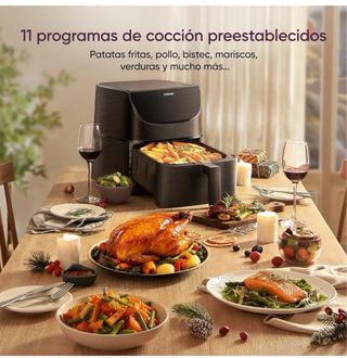 PVP EN TIENDA: 140€ PVP CON DESCUENTO: 90€ Freidora sin aceite Cosori Dual Basket de 8,5L en perfecto estado, utilizada solo una vez. Como se puede ver en las fotos todo está impecable.