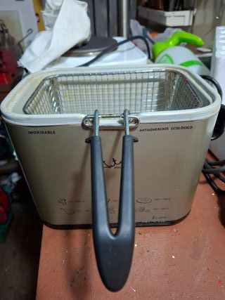 Freidora de la marca Taurus, prácticamente nueva. Ideal para cocinar pequeñas cantidades de comida. - Capacidad pequeña. - Temperatura regulable. - Incluye cesta metálica.