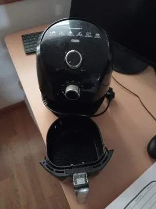 Freidora de aire en color negro con una capacidad de 2.4 litros y 1400W. Color negro. Usada dos veces. No me adapto a este tipo de cocina. Hago envíos.