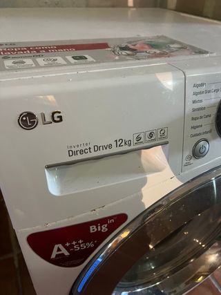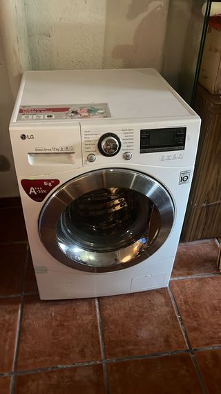 Lavadora LG de 12kg en buen estado. Tiene un diseño elegante y moderno. - Motor Direct Drive con 10 años de garantía. - Variedad de programas de lavado. - Función de lavado rápido (14 minutos). - Sistema antiarrugas.