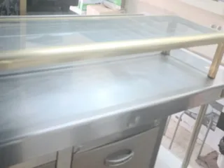 Vitrinas de bar de acero inoxidable. - Diseño moderno y funcional. - Superficie lisa y fácil de limpiar. Medidas 2 vitrinas 116 cm largo 27cm ancho 17 cm alto 1 vitrina grande 2,14 cm largo 32 cm ancho 17 cm alto Con cristal divisor a 1,07 de largo