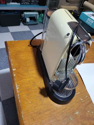 Cafetera Nespresso en color beige, con un diseño moderno y compacto. - Acabado brillante. - Bandeja recogegotas extraíble. - Depósito de agua.
