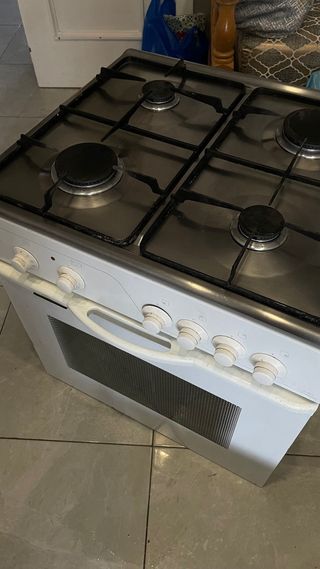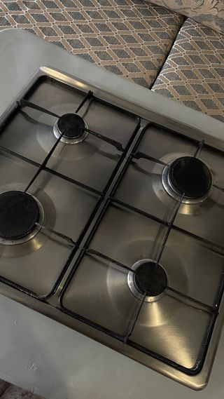 Cocina de gas con cuatro quemadores y superficie de acero inoxidable. - Cuatro quemadores de gas. - Parrillas de hierro fundido. - Encendido electrónico. El horno (no es muy potente) va junto con los fuegos. Extractor. Y lavabo. Todo funciona. Todo junto, si te interesa no dudes en contactarme cuanto antes.
