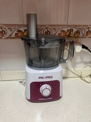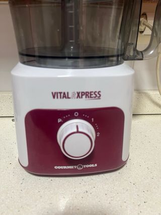 Procesador de alimentos Vital Xpress en color blanco y burdeos, con accesorios incluidos. Ideal para preparar tus comidas. - Varios niveles de velocidad. - Función P (Pulse). - Diseño compacto.