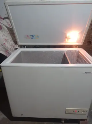 Congelador horizontal de color blanco. - Diseño tipo cofre. - Interior con separador. - Luz interior.