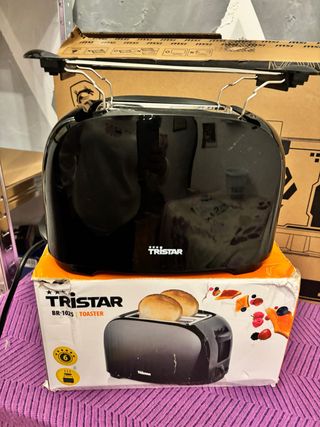 Tostadora Tristar BR-1025 en color negro.su precio es ese porque le falla un poco la ruleta reguladora de niveles de tostado por lo demás va genial - Diseño moderno y compacto. - Acabado brillante.