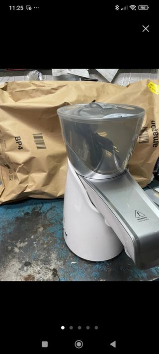 Esta máquina te permite extraer aceite de frutos secos y semillas en casa. Es compacta y fácil de usar. - Diseño moderno en color blanco y plateado. - Tapa transparente para ver el proceso. - Incluye cable de alimentación.