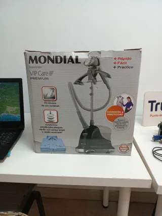 Plancha vertical Mondial VIP Care Premium, ideal para alisar y refrescar todo tipo de prendas. - Vaporizador con 70 minutos de uso continuo. - Incluye accesorios: presilla para pliegues, cepillo con cerdas largas y cepillo acolchado. - Diseño innovador y práctico. - Garantía de 2 años.