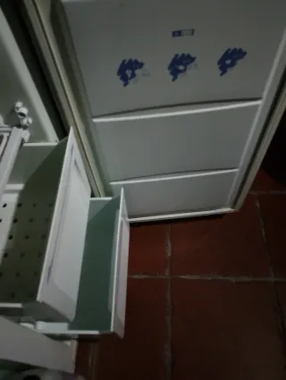 Congelador vertical de color blanco. - Cajones extraíbles para organizar alimentos. -solo tiene alguna mancha en la rejilla, pero funciona oerfectamente