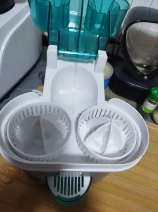 TAURUS LIQUAFRUITS -Licuadora con doble depósito – Deposito de zumo extraíble de 0,5L – Filtro de acero inoxidable – Doble sistema de seguridad -Capacidad del tazón: 2 L, Color: Blanco, -Frecuencia de entrada: 50 Hz -Material de la cuchilla: Acero inoxidable, -Paso antideslizante -Potencia: 400 W -Recogedor de pulpa -Voltaje de entrada: 230 V Usada sólo una vez, fue un regalo.