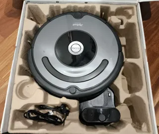 Aspirador robot iRobot Roomba 676. -Aspira y recoge la suciedad correctamente. -Batería en buen estado. - Color gris y negro. - Base de carga incluida. - Cable de alimentación.