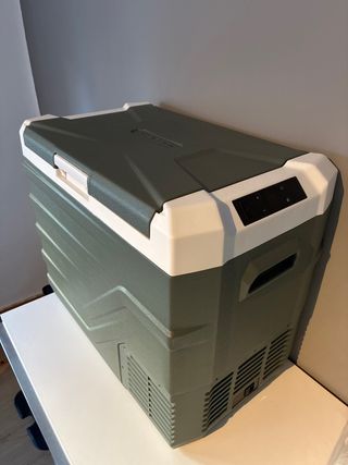Nevera portátil Alpicool con compresor y capacidad de 45 litros. Funciona tanto a 220V como a 12/24V en el coche. Nueva sin uso, solo se conecto para comprobar que funcione correctamente. Temperatura regulable hasta -18ºC - Diseño robusto y duradero. - Panel de control digital. - Asa integrada para facilitar el transporte.
