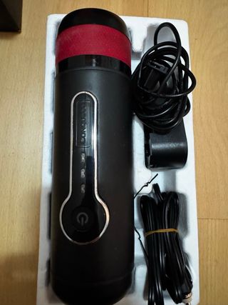 Cafetera Nespresso portátil, ideal para llevar contigo a donde vayas. - Diseño compacto y ligero. - Color negro con detalles en rojo. - Incluye cable de carga. - Incluye batería