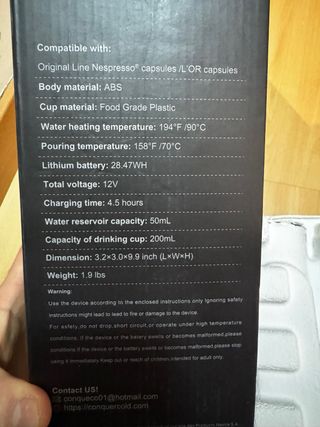 Cafetera Nespresso Portátil Viaje