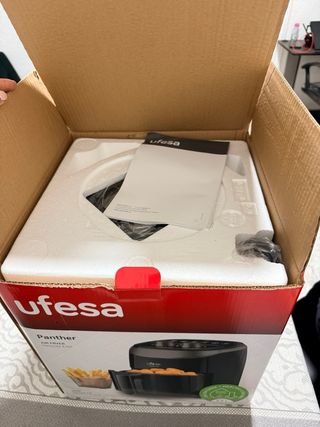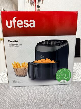 Freidora de aire Ufesa modelo Panther. - Capacidad de 3.5 litros. - Potencia de 1200W. - Diseño compacto y eficiente. - Cocina saludable con menos aceite.