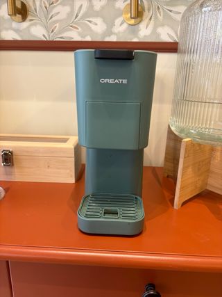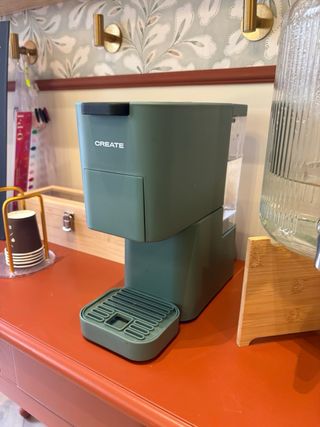 Vale para distintos tipos de cápsulas. Cafetera de cápsulas CREATE en color verde. Diseño moderno y compacto. - Marca: CREATE - Color: Verde - Tipo de cápsulas: (especificar si se sabe) - Bandeja de goteo extraíble