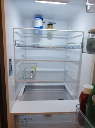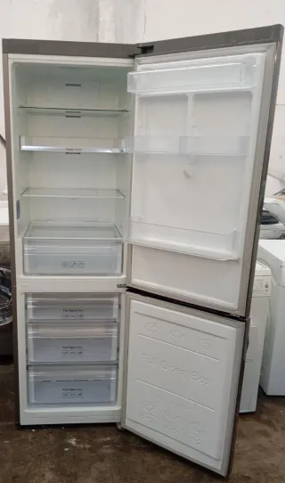 Nevera marca Samsung con unas medidas de 186cm de alto y 60cm de ancho. - Diseño moderno en color plateado. - Panel de control digital en la parte superior. - Compartimento extraíble en la parte inferior.