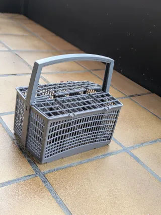 Cesta para cubiertos de lavavajillas Bosch. - Modelo SMV41D10EU. - Fabricada en plástico gris resistente.