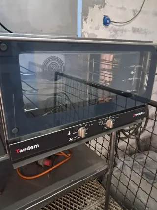 Tandem3Plus Romagsa. Dimensiones: 820x790x475mm. Dimensiones internas: 695x460x258mm. Medidas bandejas: 600x400mm o GN1/1. Capacidad bandejas: 3 600x400 o 4 GN1/1. Bandejas en dotación: 2. Potencia: 3,7Kw. Tensión: 230V. Humidificador: No. Inversión de giro: Si. Gratinador: No. Horno Eléctrico Convección Industrial 3 Bandejas 400x600mm Tandem3Plus Romagsa. Amplia gama de hornos para gastronomía, panadería y pastelería con inversión de giro. Fácil de usar y de configurar gracias al panel de mandos analógico. Características generales del Horno Eléctrico Convección Industrial 3 Bandejas 400x600mm Tandem3Plus Romagsa. En perfecto estad