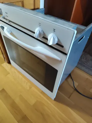 Horno empotrable de cocina Aspes en color blanco. Tiene unos 20 años de antigüedad pero sigue funcionando tanto en su resistencia inferior como en la superior de gratinado. - Mandos giratorios para control de temperatura y programación. - Puerta con cristal para visualizar el interior. - Cuenta con una bandeja interior - No tiene rejilla interior. - Tiene cuatro mandos para controlar una vitrocerámica antigua, pero si no se necesitan, no se conectan y quedan sin función. - Bastante usado pero aún con posibilidades de uso. - No tiene luz interior ni temporizador. - Rejilla superior de ventilación no incluida.