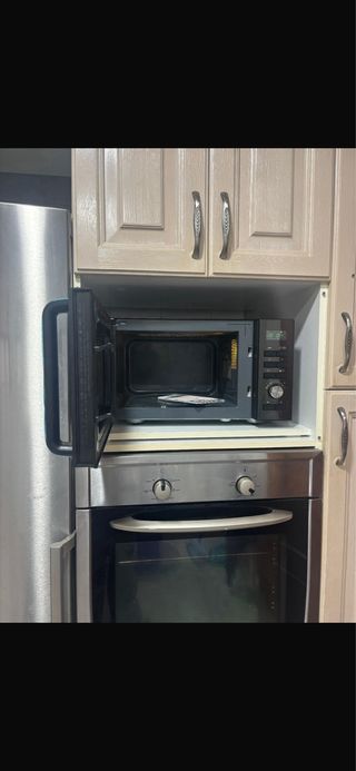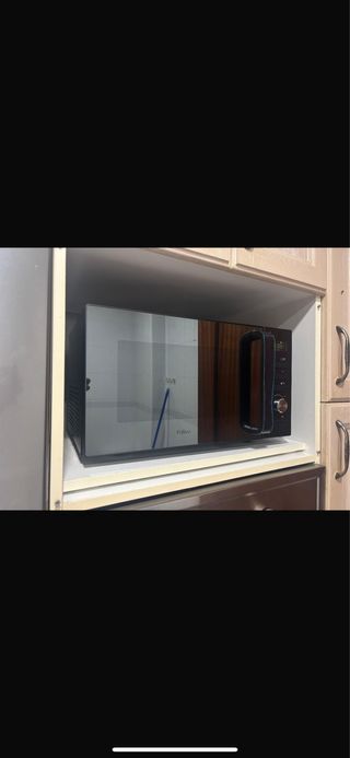 Microondas de diseño moderno en color negro, ideal para integrar en tu cocina. - Puerta con acabado espejo. - Tirador ergonómico. - Panel de control con botones y dial. esta nuevo tendrá 6 meses.