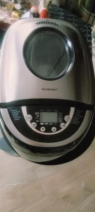 Panificadora Silver Crest, ideal para preparar pan en casa. Cuenta con varios programas y ajustes. - Capacidad para 750g, 1000g y 1250g. - Programas: Normal, Integral, Dulce, Expreso, Masa. - Pantalla digital. - Diseño moderno.