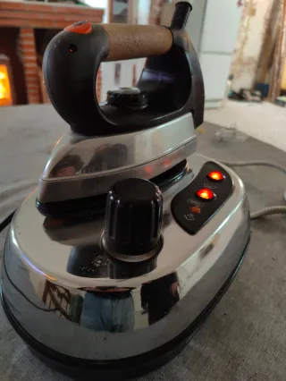 Centro de planchado con base metálica y plancha. Se vende por 15 negociables - Base cromada. - Plancha con mango de madera. - Indicadores luminosos.