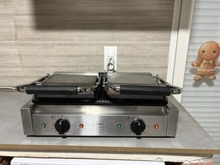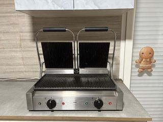 Sandwichera de uso profesional, ideal para negocios de hostelería. - Fabricada en acero inoxidable. - Doble plancha. - Mandos de control de temperatura. - precio negociable - se acepta cambio