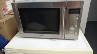 Microondas Taurus Luxus en acabado plateado. - Diseño moderno y compacto. - Panel de control con botones y dial. - Puerta con asa. - Pantalla digital.