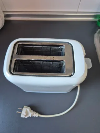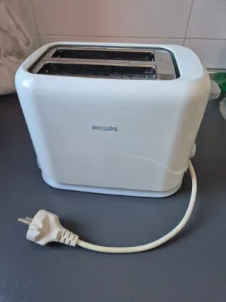 Tostadora de la marca Philips en color blanco. - Diseño compacto y moderno. - Ranuras para tostar el pan. - Cable de alimentación incluido.