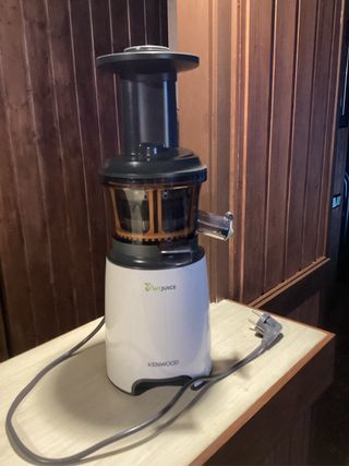 Licuadora PureJuice One JMP400WH. 140 W de potencia. LICUADO DE FRUTAS ENTERAS Diseñado para coger y triturar todo lo bueno, incluso las frutas y verduras más fibrosas, los desechos son absolutamente mínimos con la PureJuice Pro. Introduce los trozos enteros directamente en el tubo de alimentación para extraer todo el zumo y, al mismo tiempo, separa el resto en pulpa para utilizar en otras recetas como hamburguesas vegetales, brownies o purés.