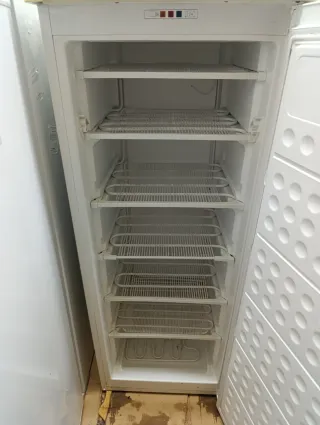 Nevera y congelador en buen estado. Uno es Nevera y el otro congelador de pie, tienen las mismas medidas. La nevera es nueva, se compró hace dos años, el congelador tiene más años pero es bueno y funciona muy bien. 150€ cada uno 280€ los dos - Estantes interiores. - Bandejas en la puerta.