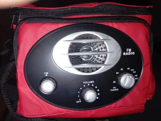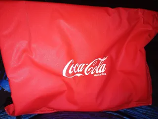 Nevera portátil con diseño de Coca-Cola que incluye una radio FM. - Color rojo. - Compartimento principal con cremallera. - Correa para colgar. - Dial de sintonización FM. - Control de volumen.