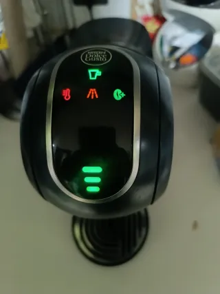 Cafetera Dolce Gusto Genio Touch S en color negro con garantía de 1 año. - Diseño moderno y compacto. - Panel táctil intuitivo. - Indicadores luminosos de estado (temperatura se puede modificar a frío, templado y caliente) e indica cuando se le tiene que hacer la descalcificación, la cual ya se le ha hecho). Está en caja guardada y tiene factura de compra y le queda de garantía 1 año. Muy poco utilizada y muy nueva.
