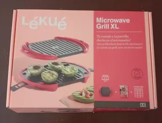 Parrilla Lekue XL para cocinar en el microondas. - Diseño compacto y fácil de usar. - Ideal para preparar tus comidas a la parrilla rápidamente. - Incluye instrucciones de uso.