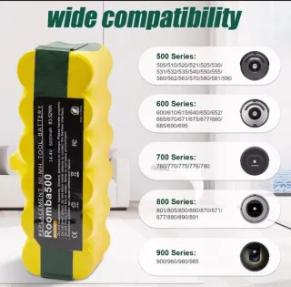 Batería de repuesto para robots aspiradores Roomba. -Compatible con todos los modelos de serie 500,600,700,800y900 - Modelo: Roomba 500 Series. - Voltaje: 14.4V. - Capacidad: 6000mAh (83.52Wh). - Tipo: Ni-MH. - Fabricada en China.