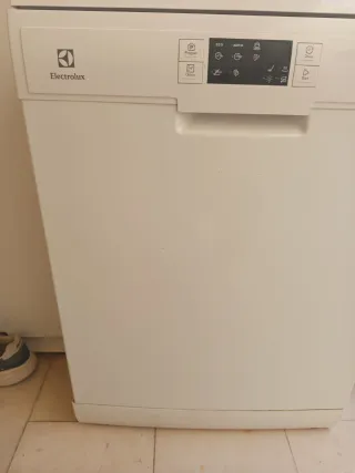Lavavajillas de la marca Electrolux en color blanco. - Panel de control con programas y opciones. - Diseño moderno y funcional.