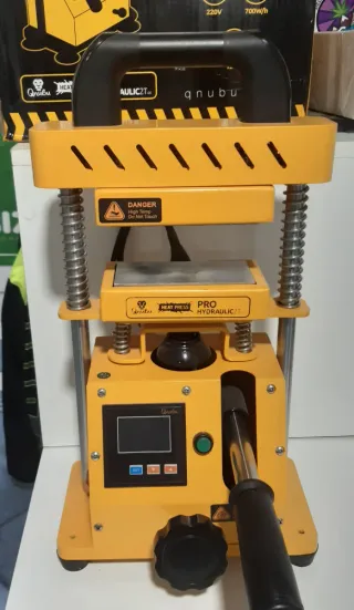 Prensa Rosin Qnubu Pro Hydraulic 2T. - Color amarillo. - Pantalla digital. - Asa de presión. - Perilla de ajuste.