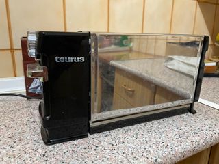 Tostador Taurus en muy buen estado. Es un electrodoméstico elegante y funcional, ideal para preparar tostadas. - Diseño compacto, antiguo pero funciona perfectamente. - Acabados en acero inoxidable y plástico negro.
