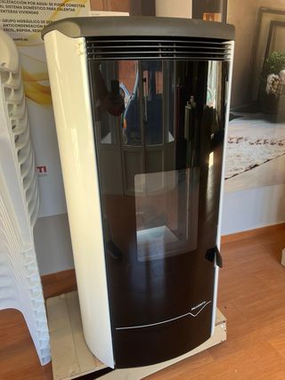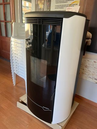 Estufa de pellet Palazetti, modelo Jackie Idro. Estufa de agua para radiadores 30% de descuento Antes 5480€, ahora 3800€ - Potencia de 25,3Kw. - Diseño moderno con acabados en negro y blanco. - Frontal de cristal. - Conexión para calefacción por agua. -Limpieza automática La estufa se encuentra en Villanueva del arzobispo, Jaén, pero puede enviarse.