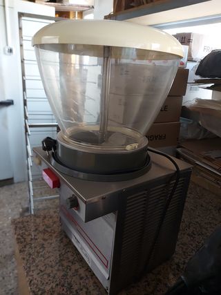 Horchatera y dispensador de zumo natural. NUEVA A ESTRENAR Modelo de 12 o 19 litros (1105€ 19l) de deposito. Potencia 300wp +1/+5oC. Diseñadas para enfriar y dispensar horchata y zumos naturales. Equipadas con un sitema de palas que garantiza una temperatura homogénea y la conservación del producto. Termostato digital. Disponibles otros modelos así como granizadoras, fabricador helados, arcón de congelación, fabricador de hielo, congelador vertical, vitrina de helados, crepera, gofrera, freidora, plancha , lavavajillas y toda la maquinaria de hostelería que necesites para tu negocio. Visítanos en nuestra tienda de Valencia.