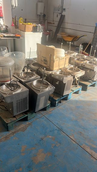 Todos los equipos esenciales para iniciar tu propio negocio de moda de helados, crêpes, gofres, etc. a bajo coste y poco riesgo. Maquinaria de primeras marcas Italianas y Españolas, a precio de saldo. - Heladera Soft Cervinia. - Montadora Carpigiani Jetwip 6L. - Granizadora Doble Sencotel 12L. - Horchatera Eurofred H-12. - 2 Gofreras Bubble Waffle - Crepera eléctrica. - Mesa Inox 120x60x90 (largo/ancho/alto). - REGALO cartonaje variado, conos, vasos batido/smoothie. Para detalles, ver artículos individuales en el perfil. POCO negociable.