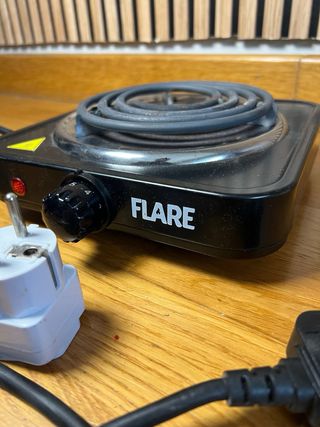 Hornillo eléctrico de la marca Flare, ideal para preparar tus comidas. Cuenta con un diseño compacto y funcional. - 6 niveles de temperatura. - Indicador luminoso de encendido. - Control giratorio para ajustar la temperatura.