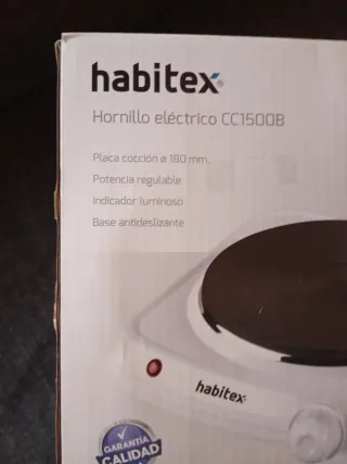 Hornillo eléctrico de la marca Habitex. Ideal para cocinar. - Indicador luminoso de encendido. - Control de temperatura. - Soporta hasta 40 Kg de carga. Necesita una limpieza