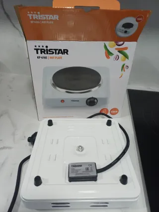 Hornillo eléctrico Tristar KP-6185 de 1000W. Ideal para cocinar. - Placa de cocción redonda. - Control de temperatura. - Indicador luminoso de encendido. Usado 2 veces, con caja, instrucciones y en muy buenas condiciones.