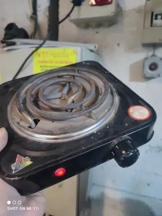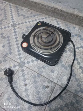 Se vende hornillo eléctrico pequeño, usado pero en buen estado. - Ideal para calentar pequeñas cantidades de comida. - Resistencia eléctrica en espiral. - Control de temperatura giratorio. - Cable de alimentación incluido.