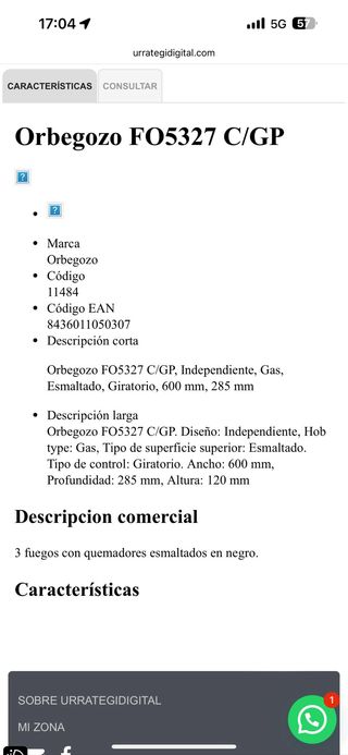 Hornillo a gas orbegozo FO 1700